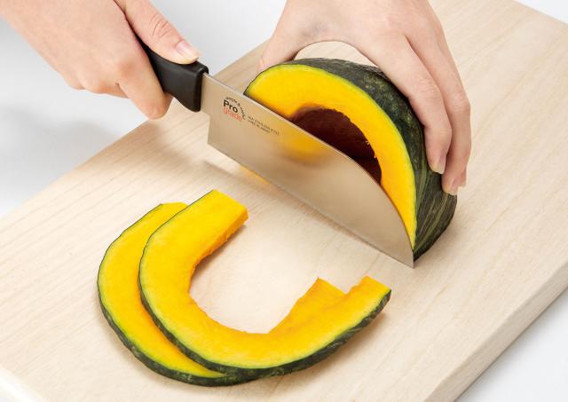 燕三条の刃物職人よる手研ぎ刃付けなので、真上からグイグイと力を入れる必要がなく軽い力で切ることができます。かぼちゃ料理も面倒になりません。