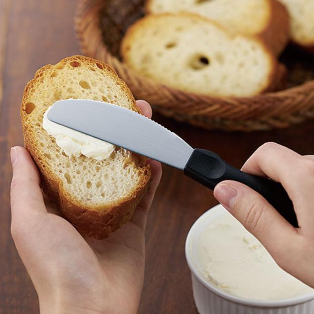 ナイフの先端はヘラのようにしなるので、バターやジャムをすくってそのままバターナイフとして塗ることもできます。