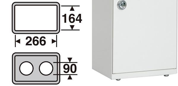 | 投入口サイズ 上は一般ごみ用などの長方形の投入口のサイズ、下はあきかん用などの投入口のサイズです。 | アジャスター付き 足元にはガタつきを調節できるアジャスターが付いています。 |