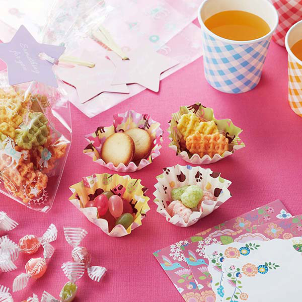 可愛い4種類の柄のおかずカップがそれぞれ10枚ずつ入っています。電子レンジでもご使用いただけます。