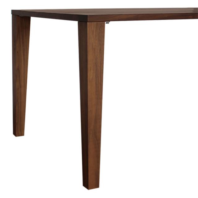 脚元にいくほど細くなりスッキリとしたデザインで、天板と同じウォールナット無垢材を使用しています。脚底にはアジャスターが付いているので、ガタつきを感じた場合は微調整することができます。