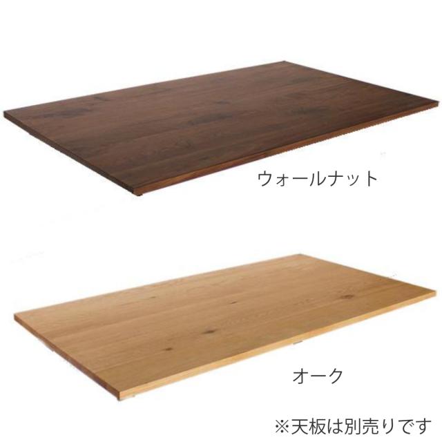 別売りの天板は幅140cm、幅160cm、幅180cmの3サイズ。ライフスタイルに合わせてお選びいただけます。天板の種類はウォールナット、オークの2種類ございます。