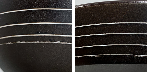 製造工程の都合上、画像のように絵柄が擦れたりずれたりする場合がございます。また、ウレタン塗装を施しているため、商品によっては溜まりが生じる場合がございます。