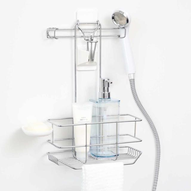 シャワーまわりにバス用品をまとめて収納できるシャワーフックです。シャワーフックを利用して簡単に収納を増やすことができるので便利です。