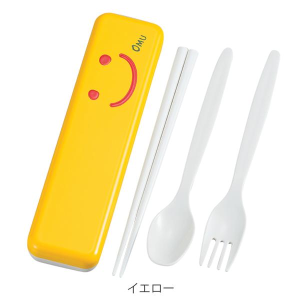 調味料で書いたような愛らしいスマイルがユニークなトリオセットです。箸・スプーン・フォークの3点セットです。