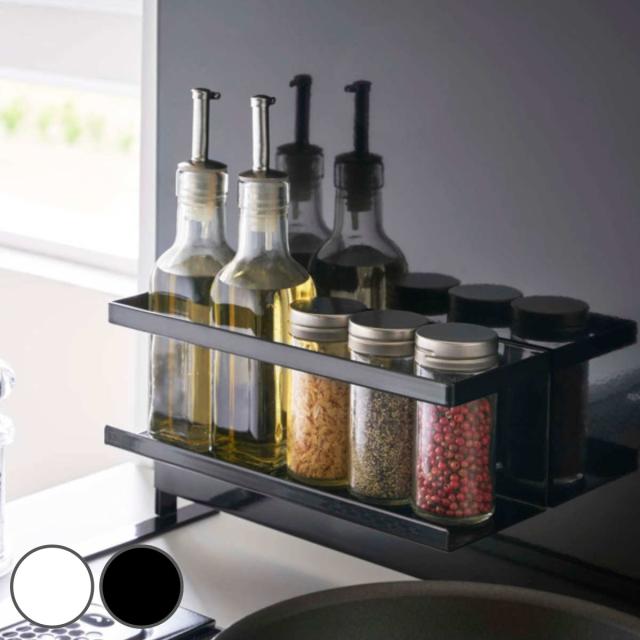 幅約24cmのワイドサイズで、コンロ周りや調理台前では調味料置きとして使えます。浮かせて収納できるので、お手入れもサッとしやすいです。