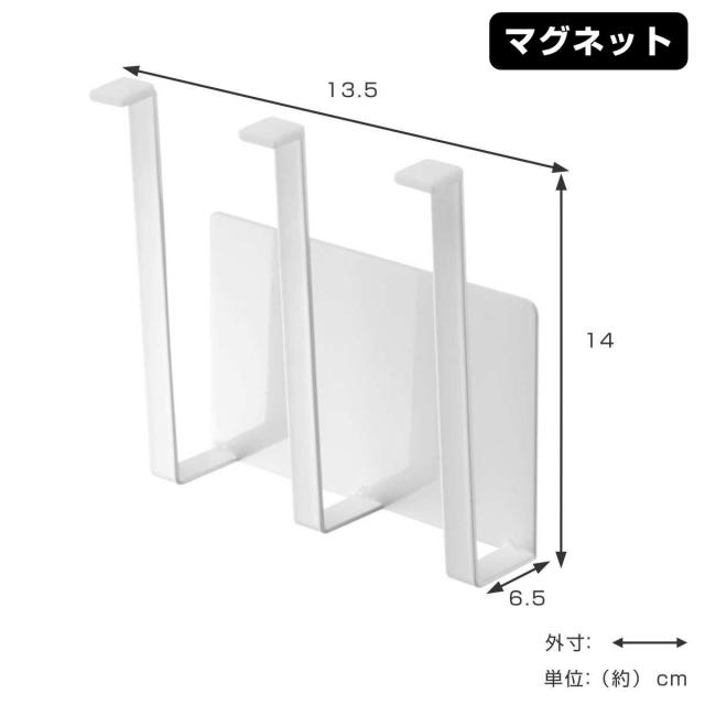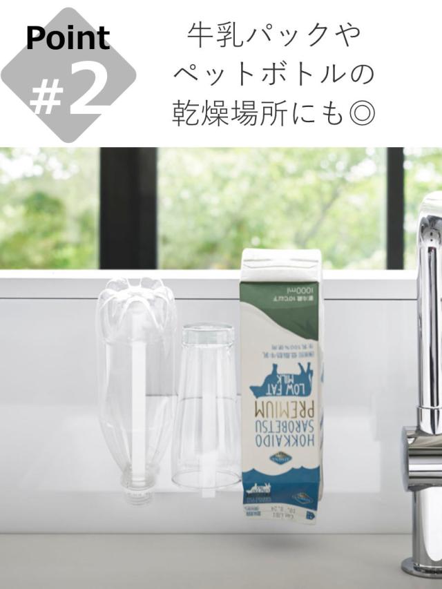 リサイクルに出す食品トレーや牛乳パック、ペットボトルなどの乾燥、保存袋を乾かして再利用したりと様々な使い方ができます。水洗い後の乾燥場所に困るものもホルダーを使うことによってシンク周りがすっきりとします。本体は粉体塗装された丈夫なスチール製でサビに強く、水まわりの壁面での使用も安心です。