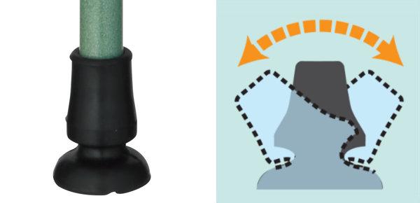 斜めから力を加えても、優れた弾力性で地面と密着し、しっかり固定するので、安全に歩行できます。