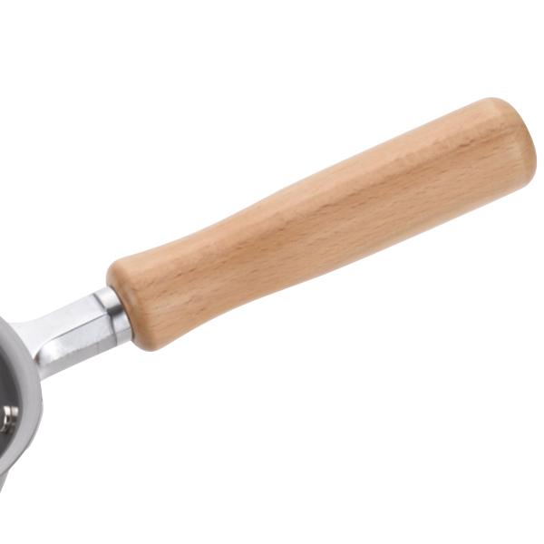 木の持ち手が優しい印象を与えます。調理中も熱くならず、機能的な面も持ち合わせています。
