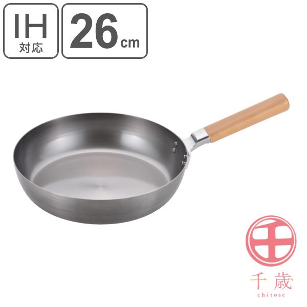 フライパン 16cm IH対応 木柄 千歳 木柄フライパン ( ガス火対応 鉄製フライパン 鉄フライパン 鉄製 オール熱源対応 日本製 16センチ 炒め鍋 いため鍋 鉄鍋 浅型フライパン おしゃれ プロ仕様 プロ用 プロユース 家庭用 フライパン ih対応)