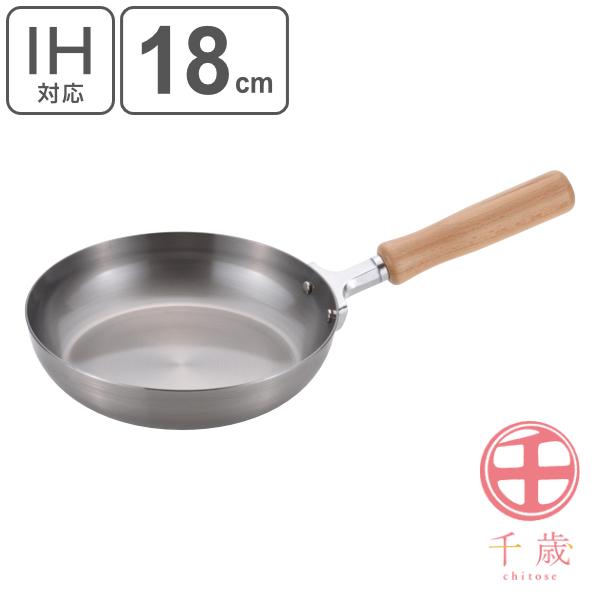 フライパン 18cm IH対応 木柄 千歳 木柄フライパン ( ガス火対応 鉄製フライパン 鉄フライパン 鉄製 オール熱源対応 日本製 18センチ 炒め鍋 いため鍋 鉄鍋 浅型フライパン おしゃれ プロ仕様 プロ用 プロユース 家庭用 フライパン ih対応)