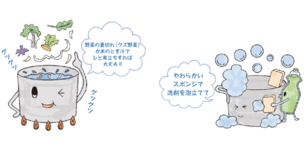 ・汚れがひどい場合:お湯を煮立てて汚れをふやかしてからスポンジなどで洗ってください。