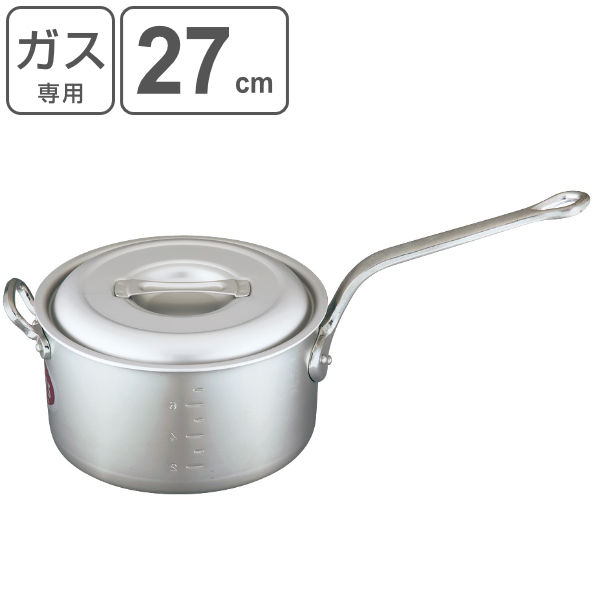 片手鍋 ガス火専用 約18L 33cm 業務用 キングポット キング片手鍋 ( ガス火 目盛り付き アルミ鍋 フタ付き 33センチ 厨房用品 厨房器具 業務用鍋 鍋 なべ )