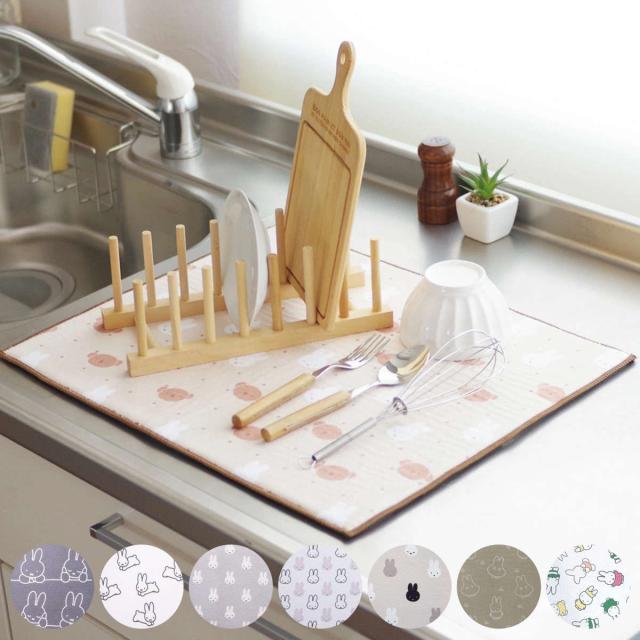 水切りマット 吸水水切りマット ミッフィー 40×50cm DickBruna ( 大人ミッフィー モノトーンミッフィー 吸水マット 水切り用マット 吸水 ディッシュマット 食器乾燥用マット 水切り用品 キッチン miffy 食器置き 水切り )