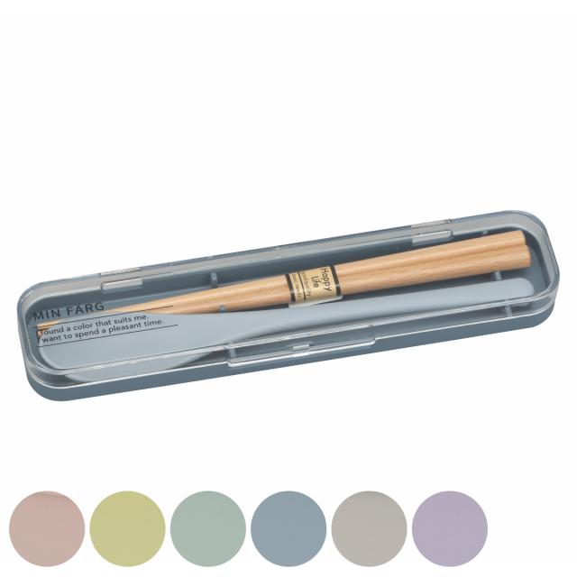コンビセット 抗菌 箸 スプーン MIN FARG カトラリーセット ( お箸 スプーンセット 18センチ 抗菌加工 カトラリー 天然木 日本製 はし 箸&スプーン ケース付き お弁当用 木製 箸箱 持ち運び 携帯用カトラリー 携帯用 )