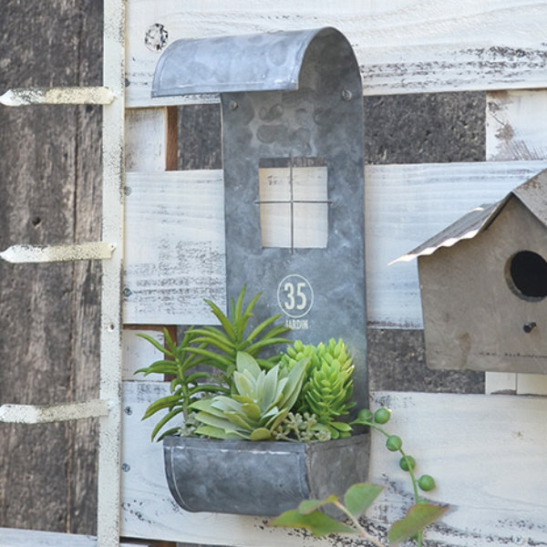 ●ブリキ製の壁用プランターなので、多肉植物を植えたり、エアプランツを置いて個性的なお庭作りが出来るアイテムです。