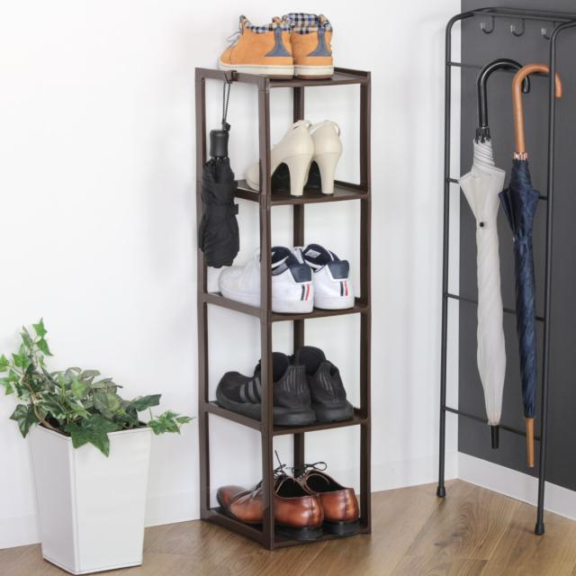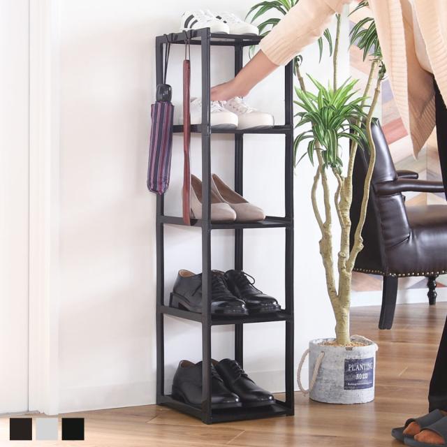 シューズラック スリム 5段 2個セット 幅23.8x奥28.5x高93cm ( 玄関収納 靴箱 省スペース くつ 靴 ブーツ 小物 収納 シューズ ラック 日本製 玄関 下駄箱 スリッパラック シューズボックス 靴入れ オープン収納 フック付き )