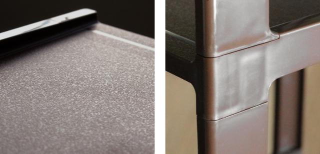 | トレーはマットな質感 トレー部分は、プラスチックの光沢がないマットな質感で少しザラザラとした手触りです。 | つぎ脚は光沢がある質感 つぎ脚部分はプラスチックの光沢がある、ざらつきのないなめらかな手触りです。 |