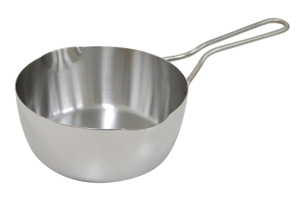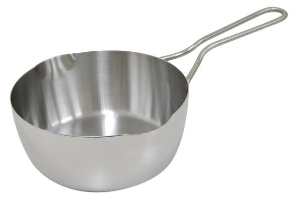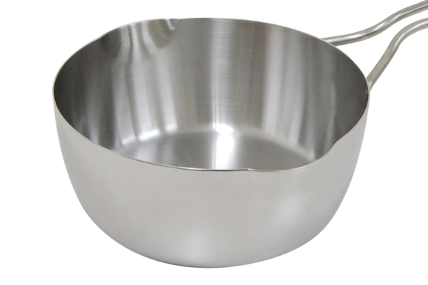 | 目盛り付き 内側には、油や汁の目安になる目盛りが付いています。おおまかな量なら計量カップいらずで調理ができるので便利です。(※画像は同シリーズの雪平鍋20cmでのイメージです。) | 注ぎ口付き 左右どちらにも注ぎ口が付いているので、油や汁をスムーズに移すことができます。両サイドに付いているので、右利きの方も左利きの方も使いやすくなっています。 |