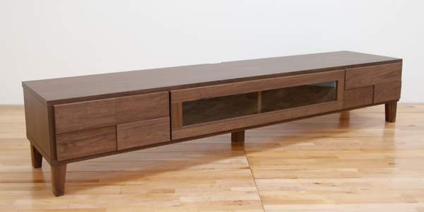 前板に凸凹加工を施したテレビボードです。シンプルモダンなデザインが、どんなお部屋にもマッチします。表面材にはウォールナット無垢材を使用しており、天然木ならではの木目の温かみが感じられ、風合いを楽しむことができます。
