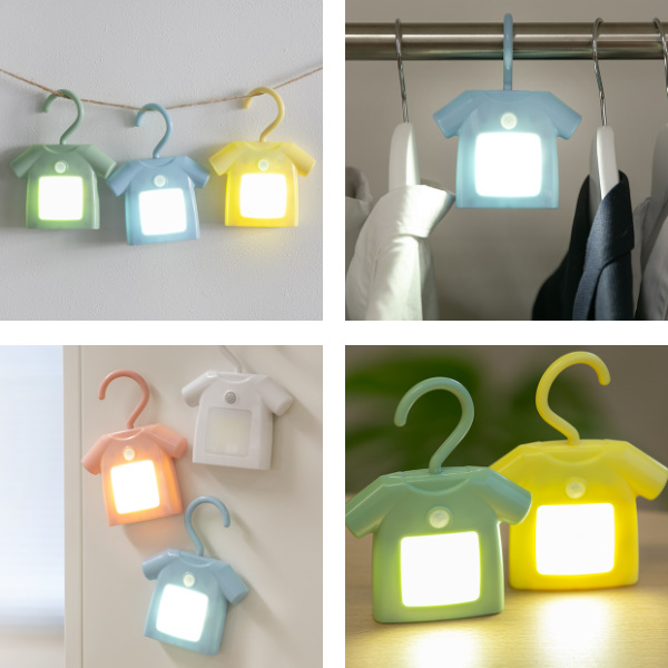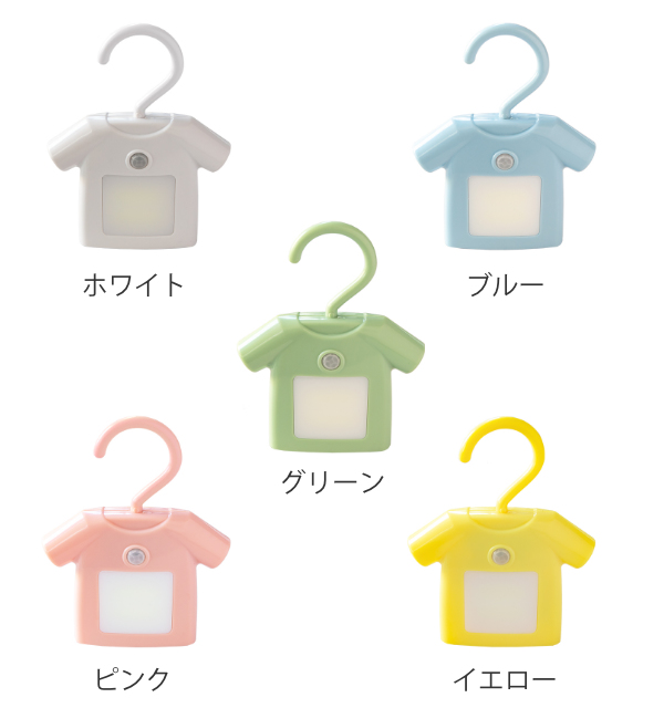 照明 クローゼットライト 人感センサー付き T-shirt ( ライト クローゼット ランタン LEDライト 足元灯 照明器具 掛けるだけ Tシャツ型 led 人感センサー 30秒 フック マグネット付き 電池式 玄関 階段 下駄箱 物置 棚 )