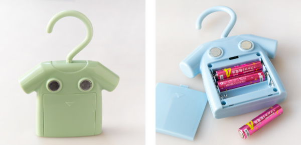 | マグネット付き 本体背面にはマグネットが付いており、収納棚などの中にも貼り付けてることができます。 | 電池式 電池を使用するので、電源が取れない場所でもお使いいただけます。 |