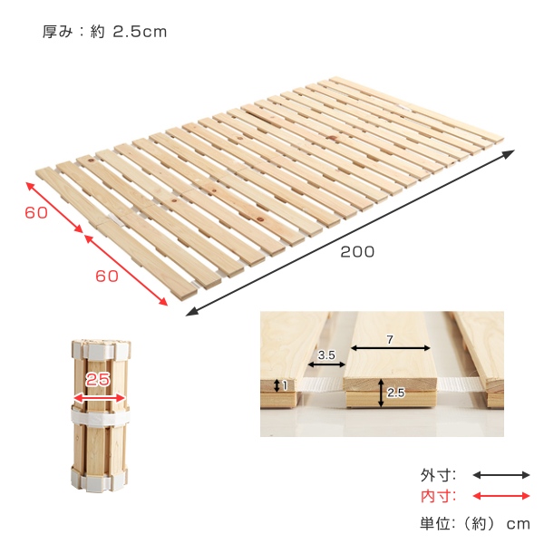すのこベッド セミダブル ロール式 檜 木製 天然木 ひのき すのこ ベッド 収納 ( ロール 折りたたみベッド すのこマット ベット ヒノキ 除湿 すのこベット スノコベッド 湿気 カビ ダニ 対策 折り畳み )