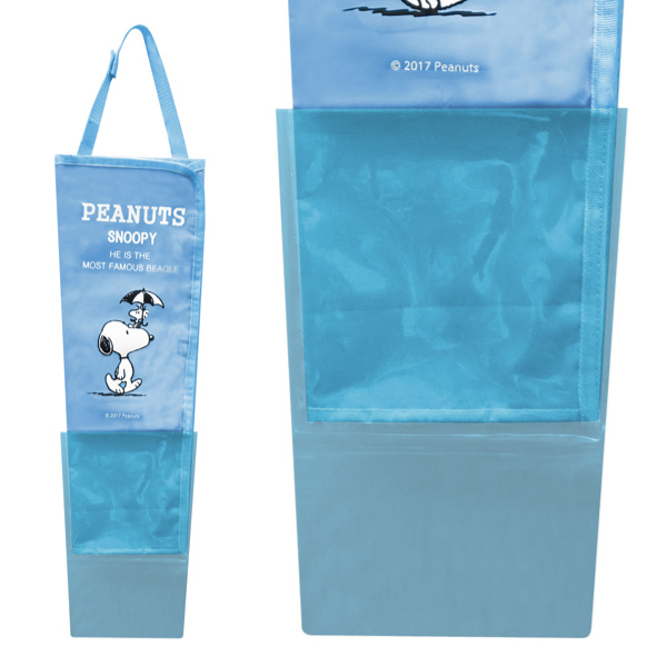 傘 収納 ポケット付きアンブレラケース スヌーピー ブルー 車用品 カー用品 ( 傘ケース 傘カバー 傘袋 吊り下げ 長傘 折りたたみ傘 車内 ヘッドレストポール 取り付け 簡単 水ポケット 取り外し可能 雨の日 玄関 )