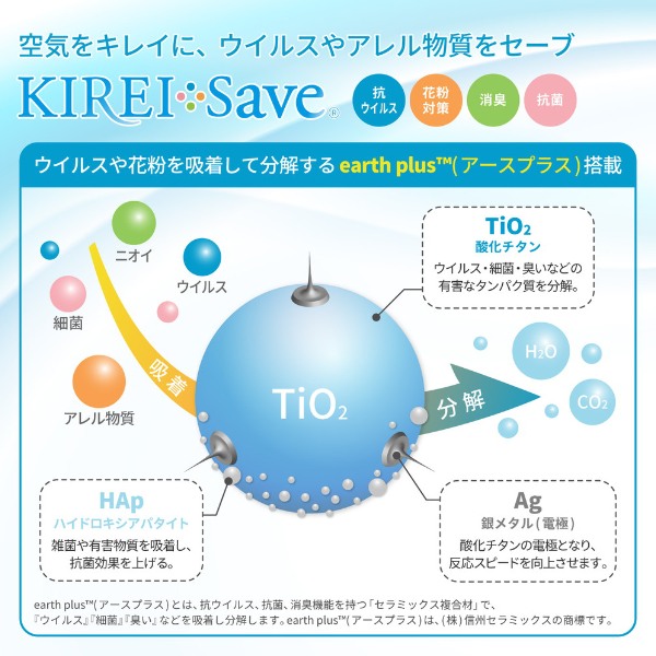 ウィルスや花粉等のアレル物質を吸着分解し、お家の中でも花粉対策ができます。