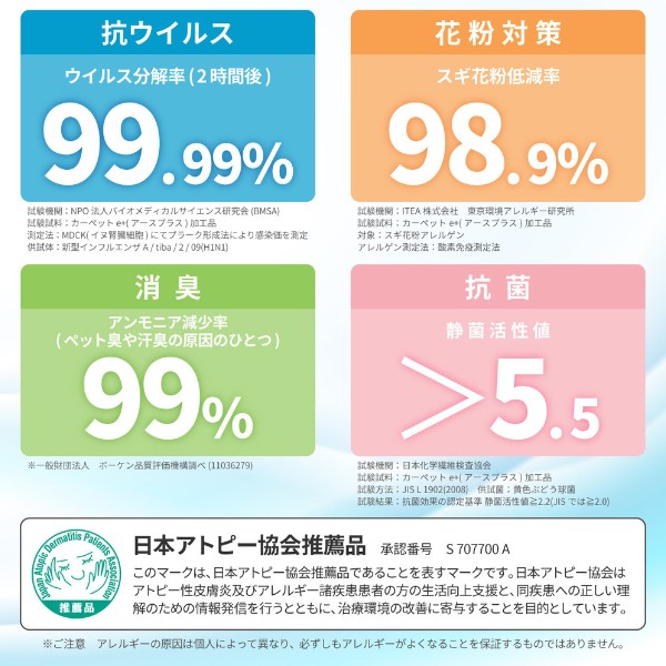 抗ウィルス・花粉対策・消臭・抗菌・防ダニ