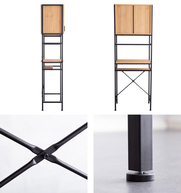 側面と背面に、前面と同じ木目調の素材を使用しているので、どの角度から見ても美しい仕上がりになっています。また、横揺れを防ぐクロスバーと、ガタつきを軽減するアジャスター付きで、安全性があり安心してお使いいただけます。