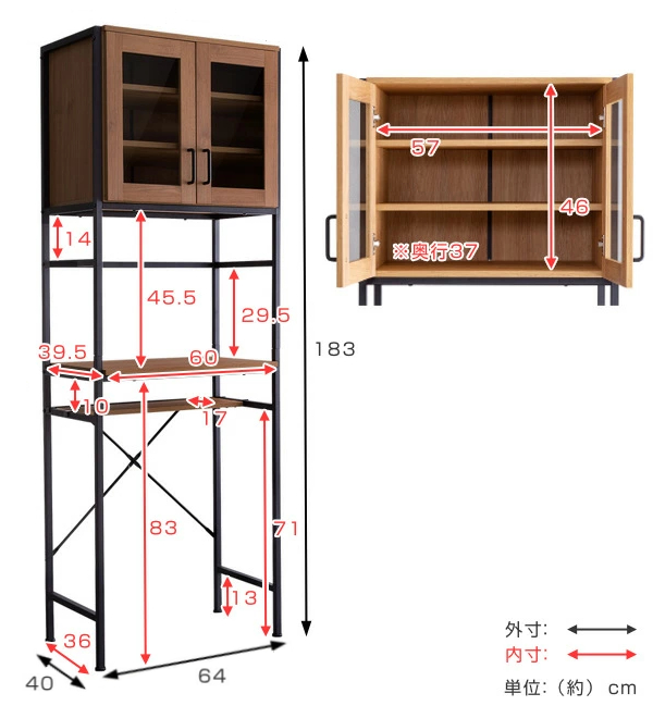 | サイズ | 約 幅64×奥行40×高さ183(cm) |