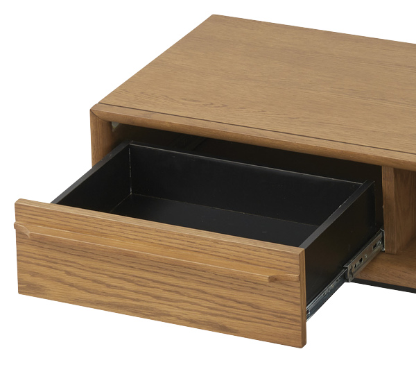 引出しはフルスライドレール仕様なので、たっぷり収納しても奥のものまでスムーズに取り出せます。テレビ周りの小物類を整理でき、隠す収納で生活感を見せないスッキリした印象になります。