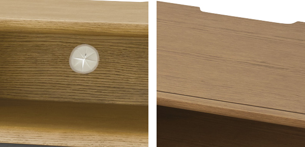 | 配線穴 DVDレコーダーやゲーム機などのAV機器の配線を後ろに通していただけるようになっているので、まとまりにくい配線も片付いた印象になります。 | コードスリット 壁にぴったり付けてもテレビの配線を裏に通すことができます。 |