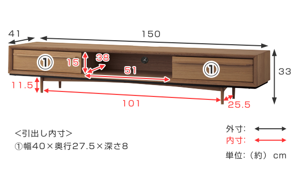 | サイズ | 約 幅150×奥行41×高さ33(cm) |