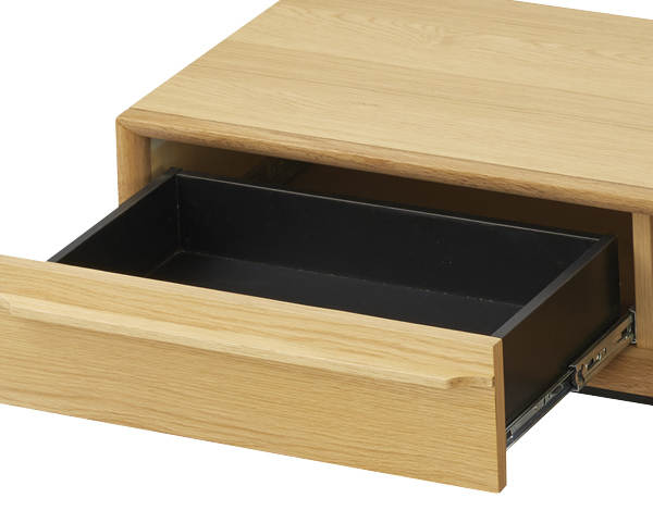 引出しはフルスライドレール仕様なので、たっぷり収納しても奥のものまでスムーズに取り出せます。テレビ周りの小物類を整理でき、隠す収納で生活感を見せないスッキリした印象になります。