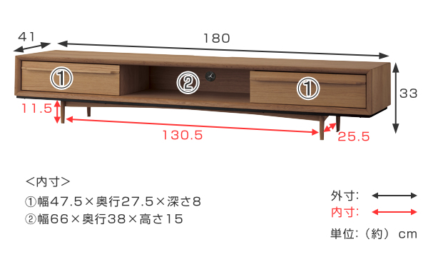 | サイズ | 約 幅180×奥行41×高さ33(cm) |