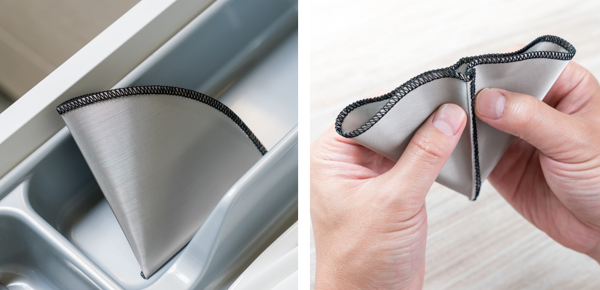 折りたためてて、洗ってくり返し使えるので環境にやさしいです。細かなメッシュでお手入れも簡単です。