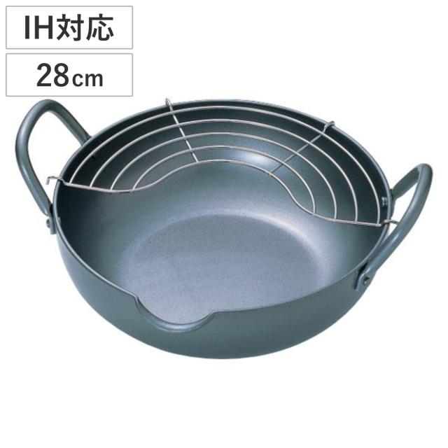 天ぷら鍋 28cm IH対応 極厚 極天 底厚3.2mm 日本製 ( フライ鍋 フライヤー 揚げ鍋 揚げ物鍋 両手鍋 なべ 鉄鍋 ガス火対応 アミ付き 28センチ ih対応 鉄製揚げ鍋鉄製 揚鍋 天婦羅鍋 )