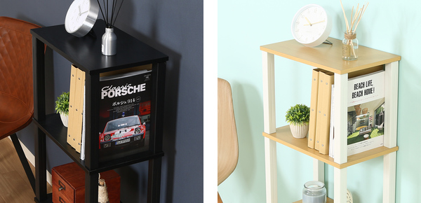 一段の棚の高さが約34cmで、雑誌やA4サイズのファイルを立てて収納することができます。
