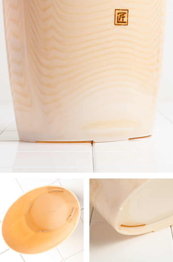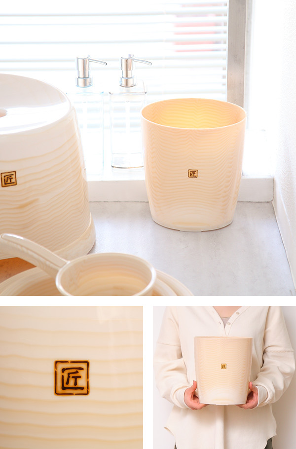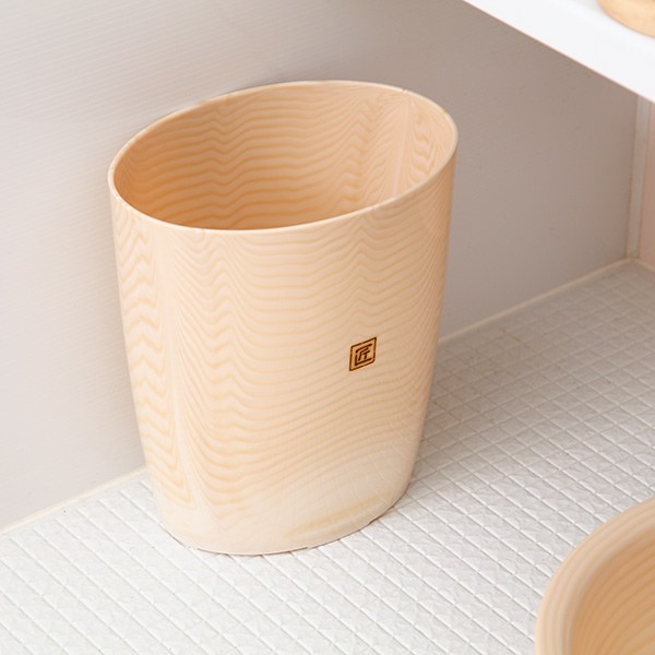 柔らかい色彩の木目調の模様が特徴的な浴用クズ入れです。暖かみのある木目調は優しい雰囲気でどんなバスルームにもぴったりです。リアルな木目模様は表面だけの着色ではないので、消えたりめくれたりしにくいです。