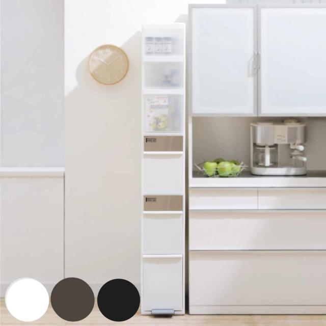 ゴミ箱 収納ボックス付き 55L 幅25.5cm 6段 分別 スイングストッカー ワイド ( 55リットル 縦型 ダストボックス ごみ箱 キッチン ふた付き スリム ペダル式 引き出し スイングふた 隙間 収納 分別ゴミ箱 ストッカー キッチン収納 )