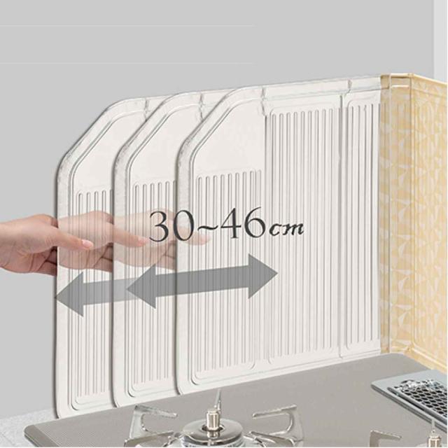 スライド機能付きで、両そでの長さを30〜46cm調節ができます。コンロを広く使いたい時や、掃除の際に縮めることができ便利です。