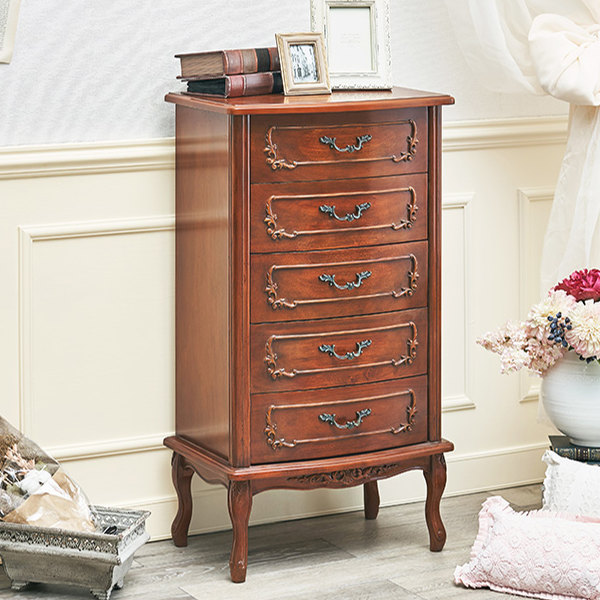 《 LH6783 リビングチェスト 木目 マホガニー 5段チェスト 箪笥 幅 50 奥行 35 高さ 95 猫足 カブリオールレッグ フレンチカブリオレ アンティーク アンティーク調 クラシック エレガント ロココ調 彫刻 引き出し 引出 引出し 収納チェスト 収納家具 整理タンス 家具 インテリア リビング 玄関 通帳 印鑑 ハンコ 文房具 お洒落 オシャレ 新婚 新生活 新居 寝室 》