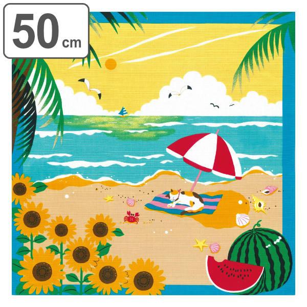 風呂敷 ランチクロス お弁当 50cm 中巾 三毛猫みけの夢日記 小ふろしき みけの夏休み ( 風呂敷き ふろしき お弁当包み 50センチ 和柄 綿 日本製 ネコ 弁当 包み 弁当包み 小風呂敷 和風 手土産 マルチクロス タペストリー ねこ )