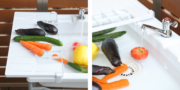 外でそのまま野菜が洗える流し台