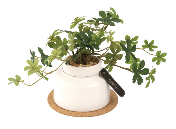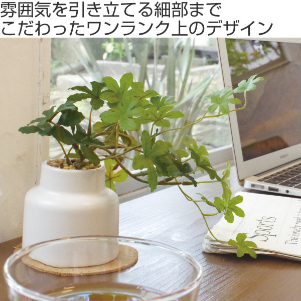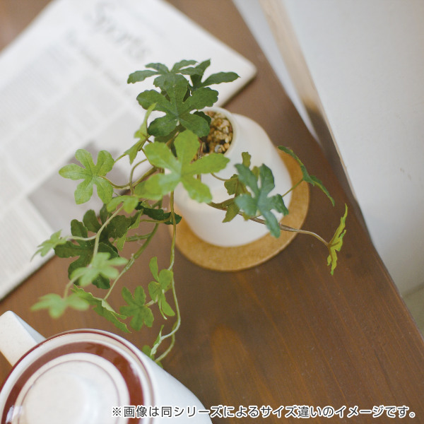 置いておくだけで雰囲気を明るくしてくれそうなシュガーバインのフェイクグリーンです。オリジナルの陶器鉢や雰囲気を引き立てるコルクコースターなど細部にまでこだわったワンランク上のデザインです。少し大き目のサイズ感でリビングや玄関などお部屋のアクセントとしてもおすすめです。