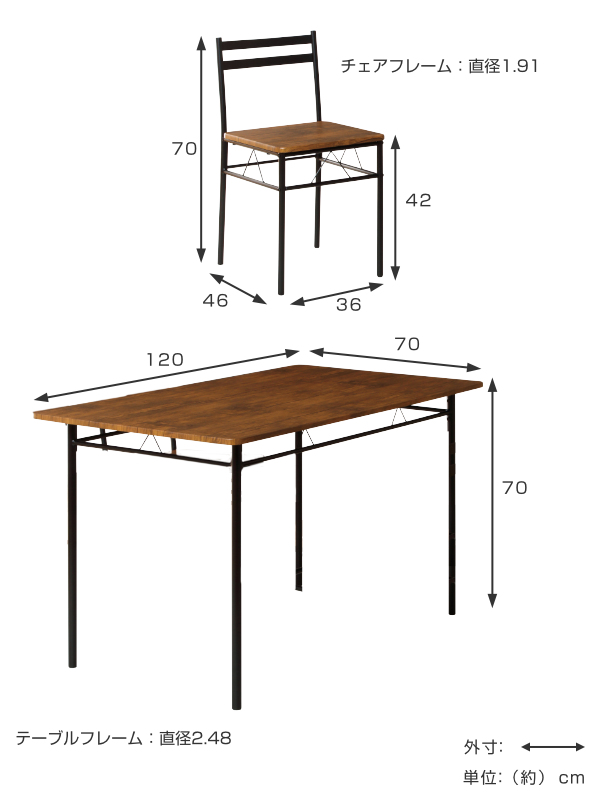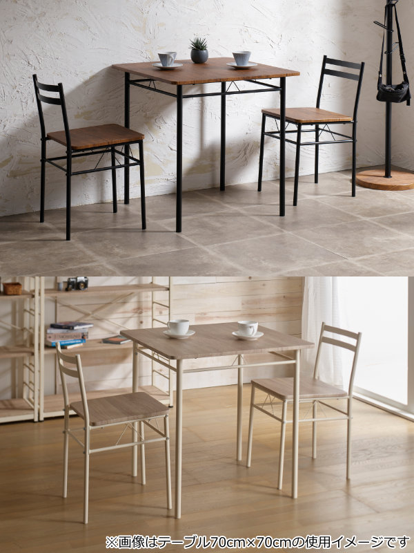 | サイズ | テーブル:約 幅120×奥行70×高さ70(cm) チェア:約 幅38×奥行46×高さ70×座面高42(cm) |