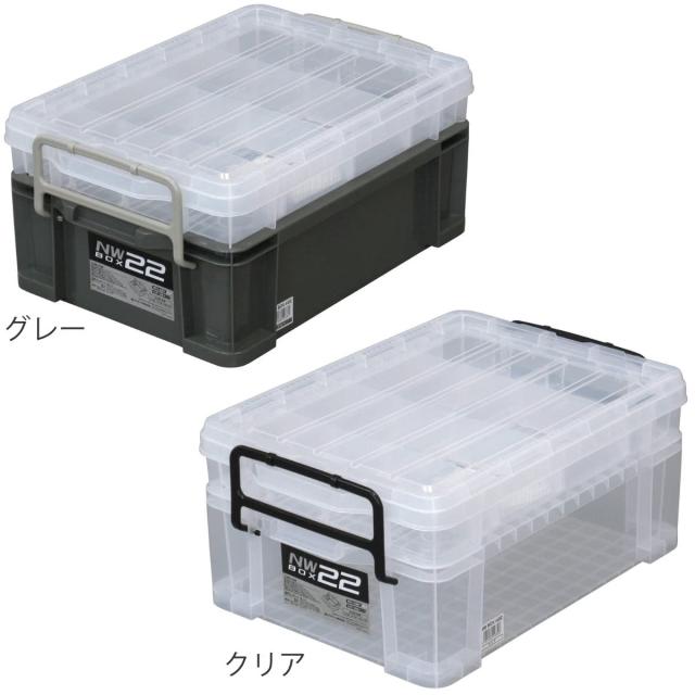 収納ボックス 幅37.9×奥行54.5×高さ24.5cm 2段 NW ( フタ付き プラスチック 収納ケース ボックス 収納 持ち手付き ハンドル 仕切り付き 小物収納 頑丈箱 積み重ね 浅型 深型 工具箱 衣装ケース )