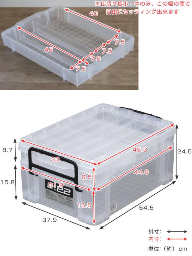 | 材質 | 本体・フタ・バックル・仕切板(小・中):ポリプロピレン 仕切板(大):ポリスチレン |
